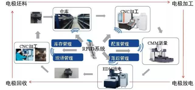 具體實現方式是對每個電極管安裝RFID標簽,從晶體管入庫、生產、測量、放電的全流程進行瓜農空。通過對庫存、配置、現場的數據采集,從電極的設計延伸到制造、測量和使用的全過程,使數據和制造無縫交互,實現全流程的自動化,無人化